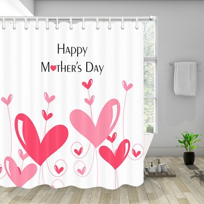 Pink Heart Shower Curtain Bath Rug Set Happy Mothers Day Decor