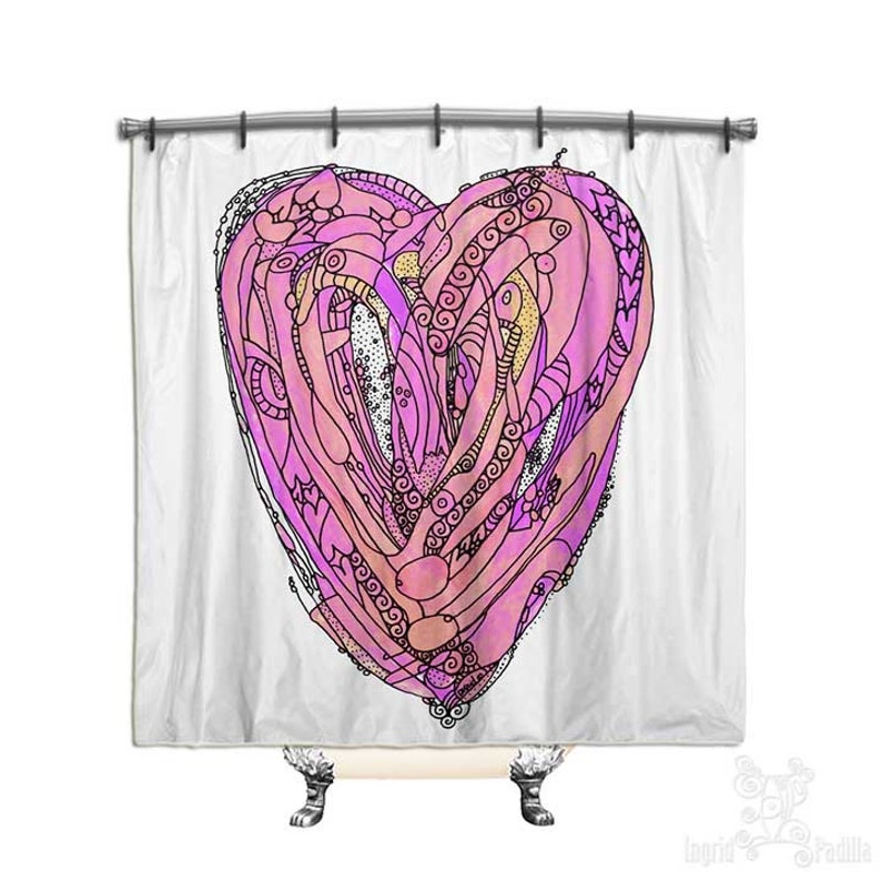 Heart Shower Curtain Shower Curtain Heart Heart Art Fabric Etsy