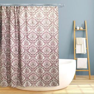 Linen Store Rose Fabric Bath Shower Curtain Burgundy Damask Red