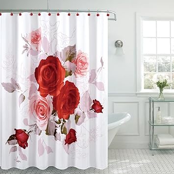 Amazon Com Uphome Floral Fabric Shower Curtain Waterproof