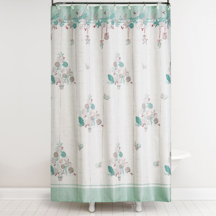 Saturday Knight Coastal Christmas Shower Curtain And Hooks Set