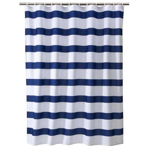 Rugby Stripe Shower Curtain White Blue Cool Room Essentials