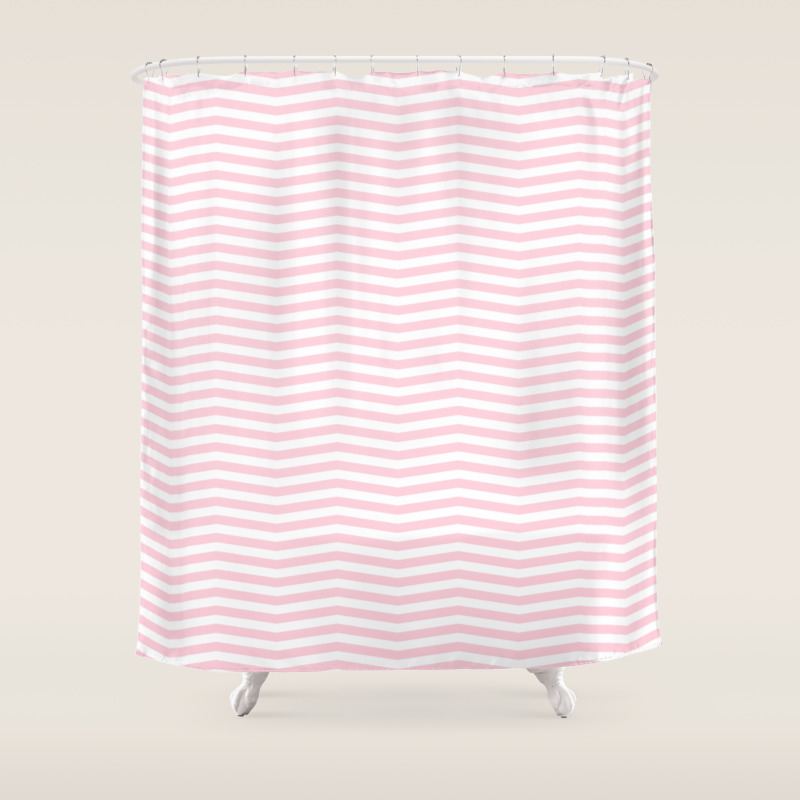 Light Soft Pastel Pink And White Chevron Shower Curtain By
