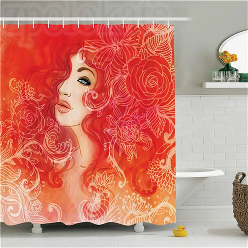 Fashion House Decor Shower Curtain Woman Face With Floral