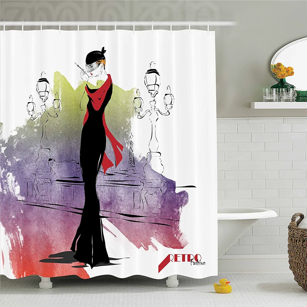 Fashion House Decor Shower Curtain Girl With Red Shawl Street