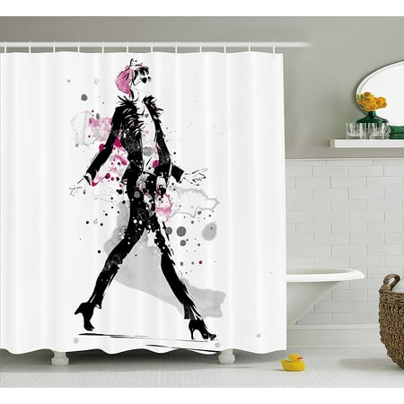 Qenuan Camper Shower Curtain Girls Cartoon Girls With High Heel