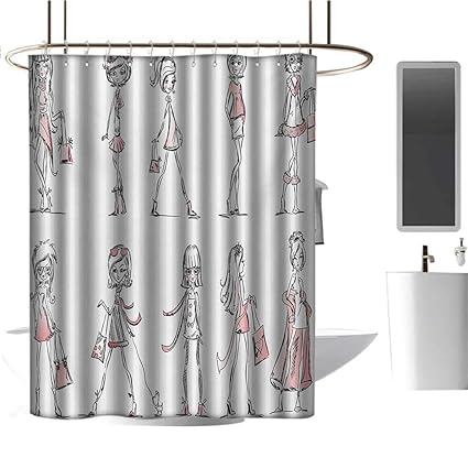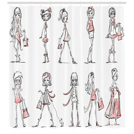 Girls Shower Curtain Cartoon Girls With High Heel Shoes Glamour