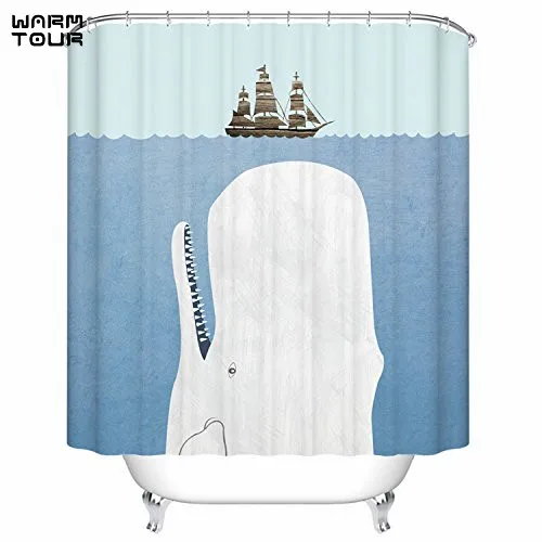 Warm Tour Whale Sail Design Fabric Shower Curtain Waterproof