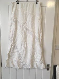 M S White Linen Mix Peasant Style Boho Patchwork A Line Midi Skirt