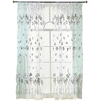 Deconovo Transparent Voile Drapes Floral Pattern Sheer Curtains