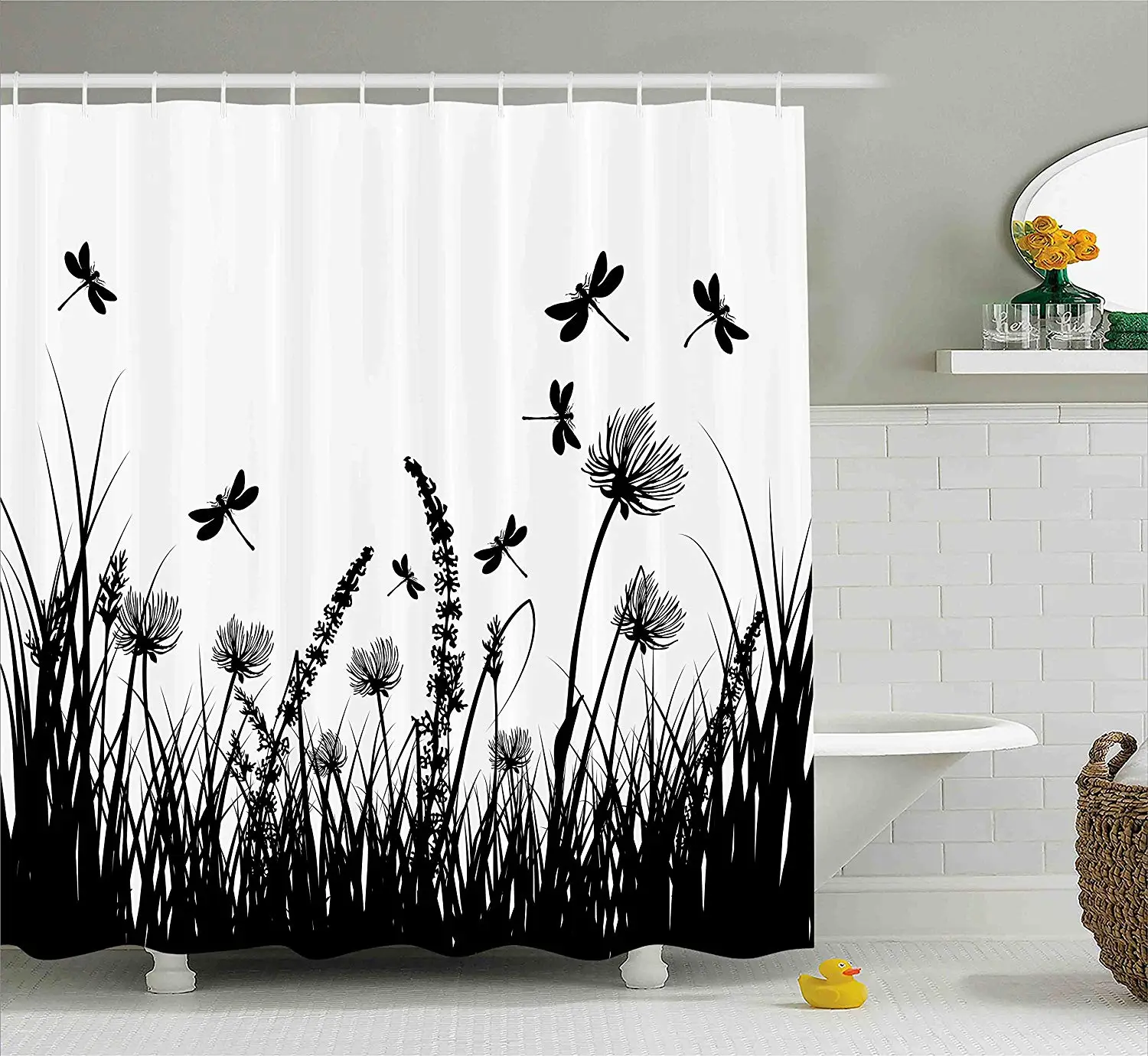 Amazon Com Skymoving Shower Curtain Fabric Grey Grass With Hooks