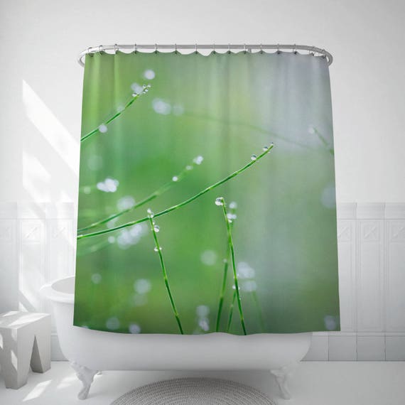 Raindrops On Grass Shower Curtain Green Decor Photo Etsy