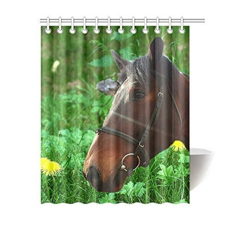 Artjia Horse And Grass Bathroom Waterproof Fabric Shower