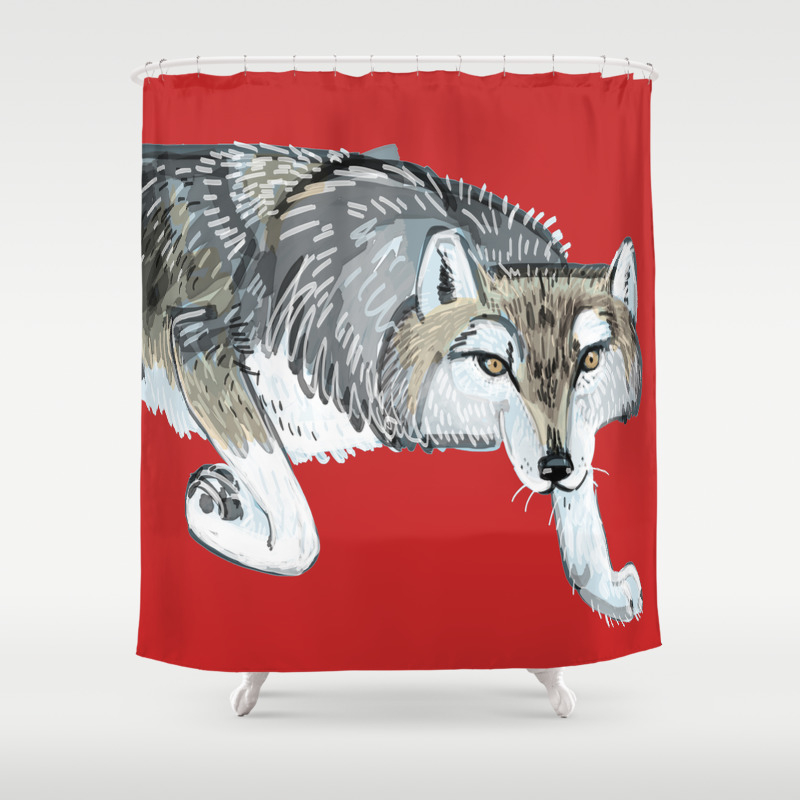 Totem Hokkaido Grey Wolf Red Shower Curtain By Natachapink