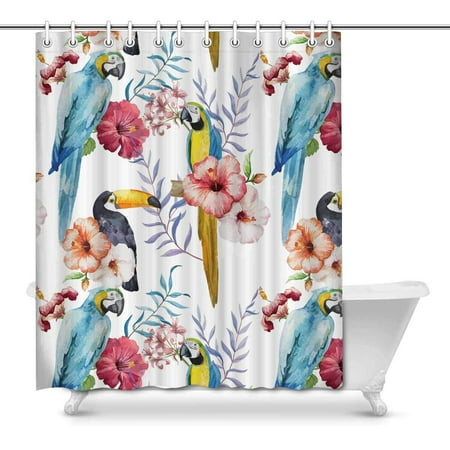 Mkhert Watercolor Parrot Bird With Hawaiian Hibiscus Flowers House