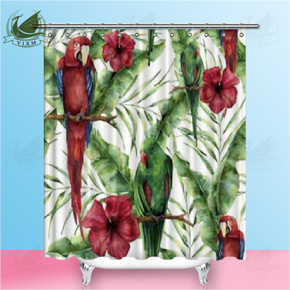 2020 Vixm Watercolor With Parrots Banana Palm Leaves And Hibiscus