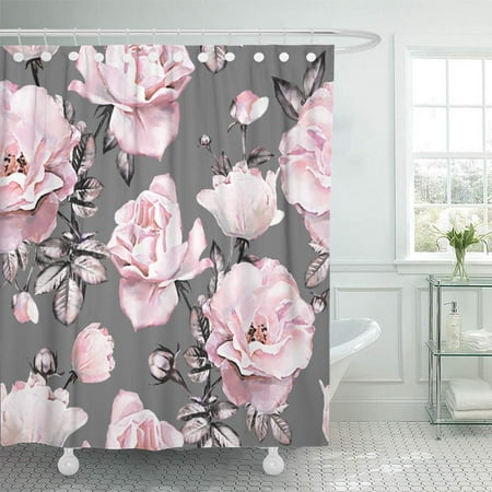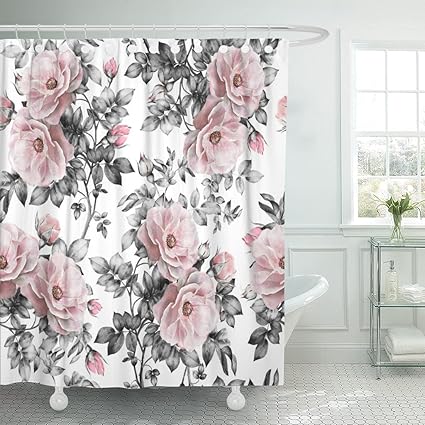 Amazon Com Emvency Shower Curtain Gray Retro With Pink Flowers