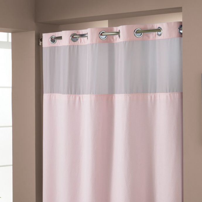 Hookless Waffle Pink 71 X 74 Fabric Shower Curtain And Liner