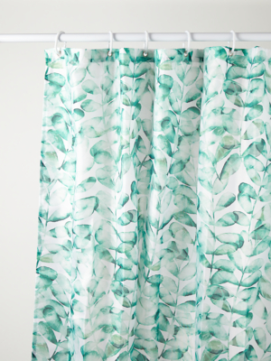 Green And White Leaf Print Fabric Shower Curtain Home George