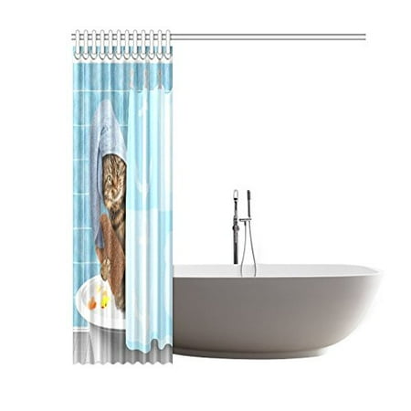 Gckg Funny Bathing Cat Shower Curtain Cute Animals Polyester