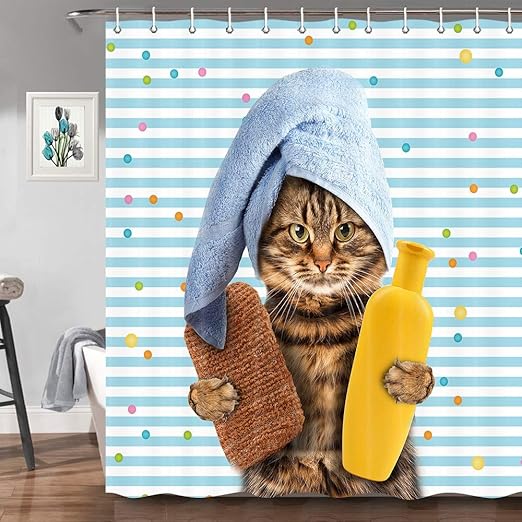 Amazon Com Jawo Cat Shower Curtain Speckle Stripe Cute Kitten
