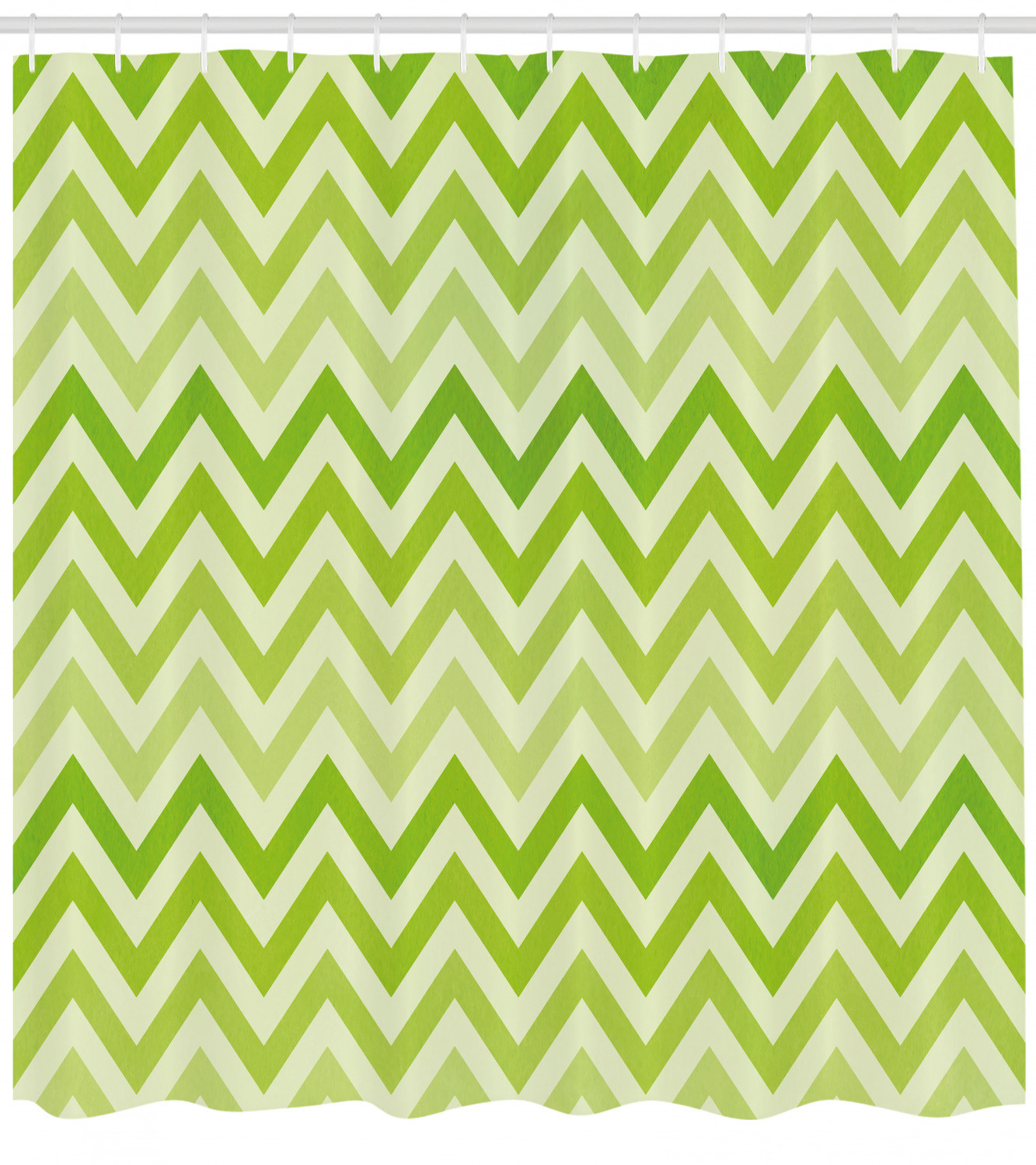 Ambesonne Lime Green Shower Curtain Traditional Chevron Print For