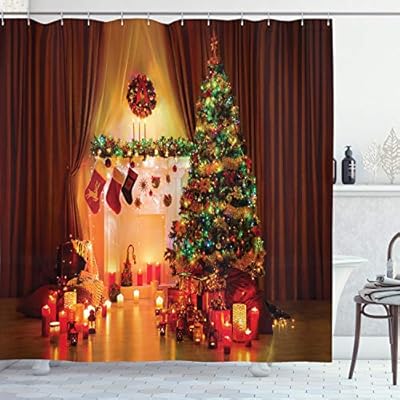 Amazon Com Ambesonne Christmas Shower Curtain Cloth Fabric