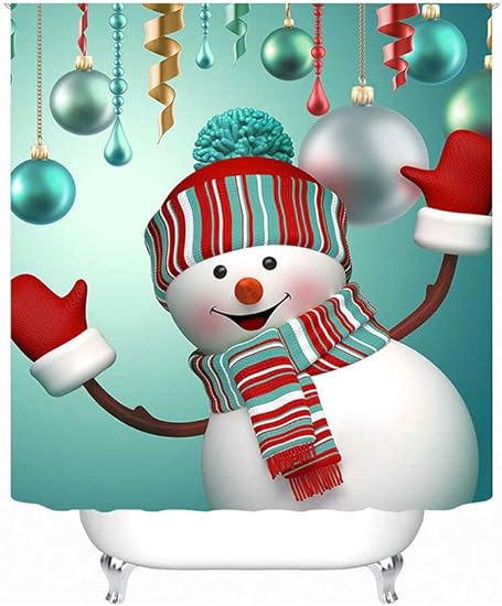 Amazon Com Hiyoo Snowman Christmas Shower Curtain With Hooks
