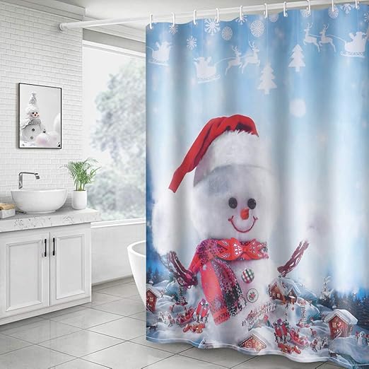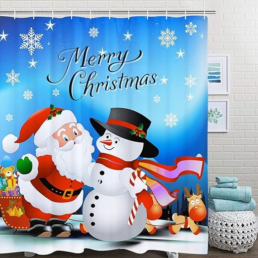 Eaiven snoopy christmas shower curtain funny charlie brown waterproof shower curtains navy blue bath curtain kids cute bathroom set with hooks for thanksgiving halloween decoration home decor 66x72 47 out of 5 stars 381. Fashionman merry christmas shower curtain mould and mildew resistant bathroom curtain waterproof polyester fabric bath curtain bath mat sets toilet mats 180 x 180 cm 4pcs santa claus and snowman.