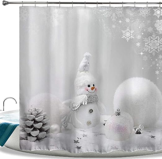 Amazon Com Nibesser Christmas Shower Curtain Cute Snowman Print