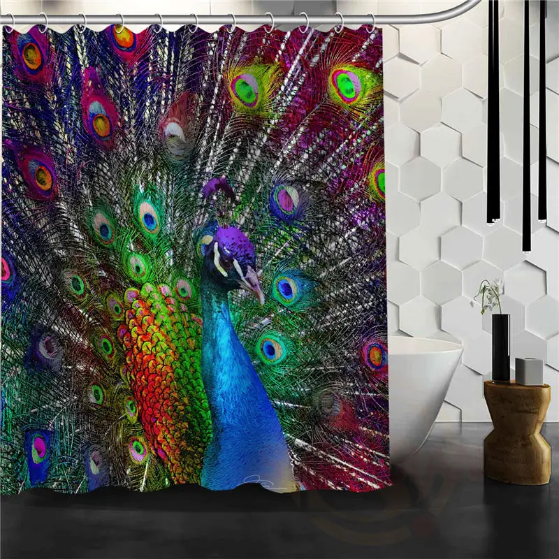 Custom Colourful Peacock Waterproof Fabric Bathroom Shower Curtain