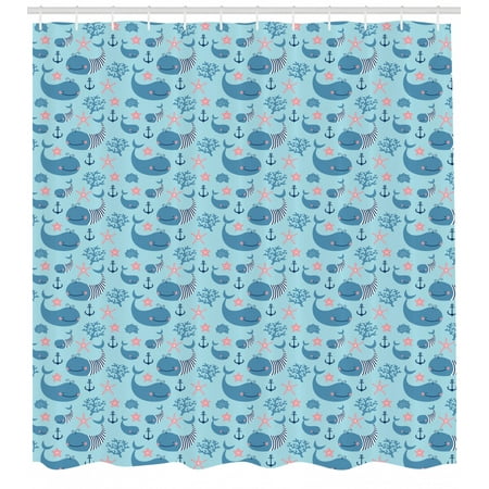 Whale Shower Curtain Happy Smiling Sea Animals With Coral Reef
