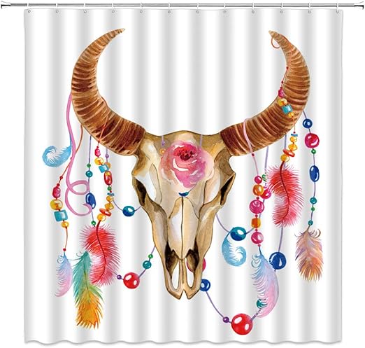 Amazon Com Bull Skull Shower Curtain Colorful Feather Watercolor