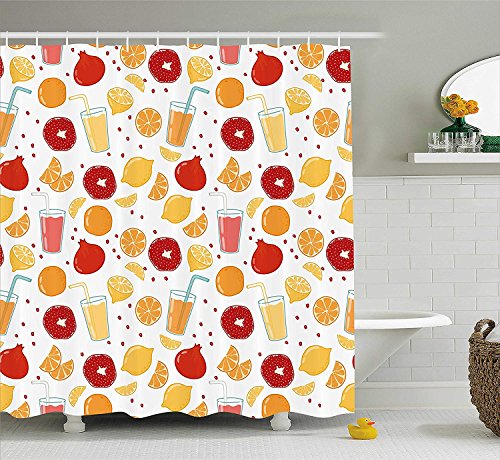 Migaga Modern Shower Curtain Fruits Pomegranate Orange Juice