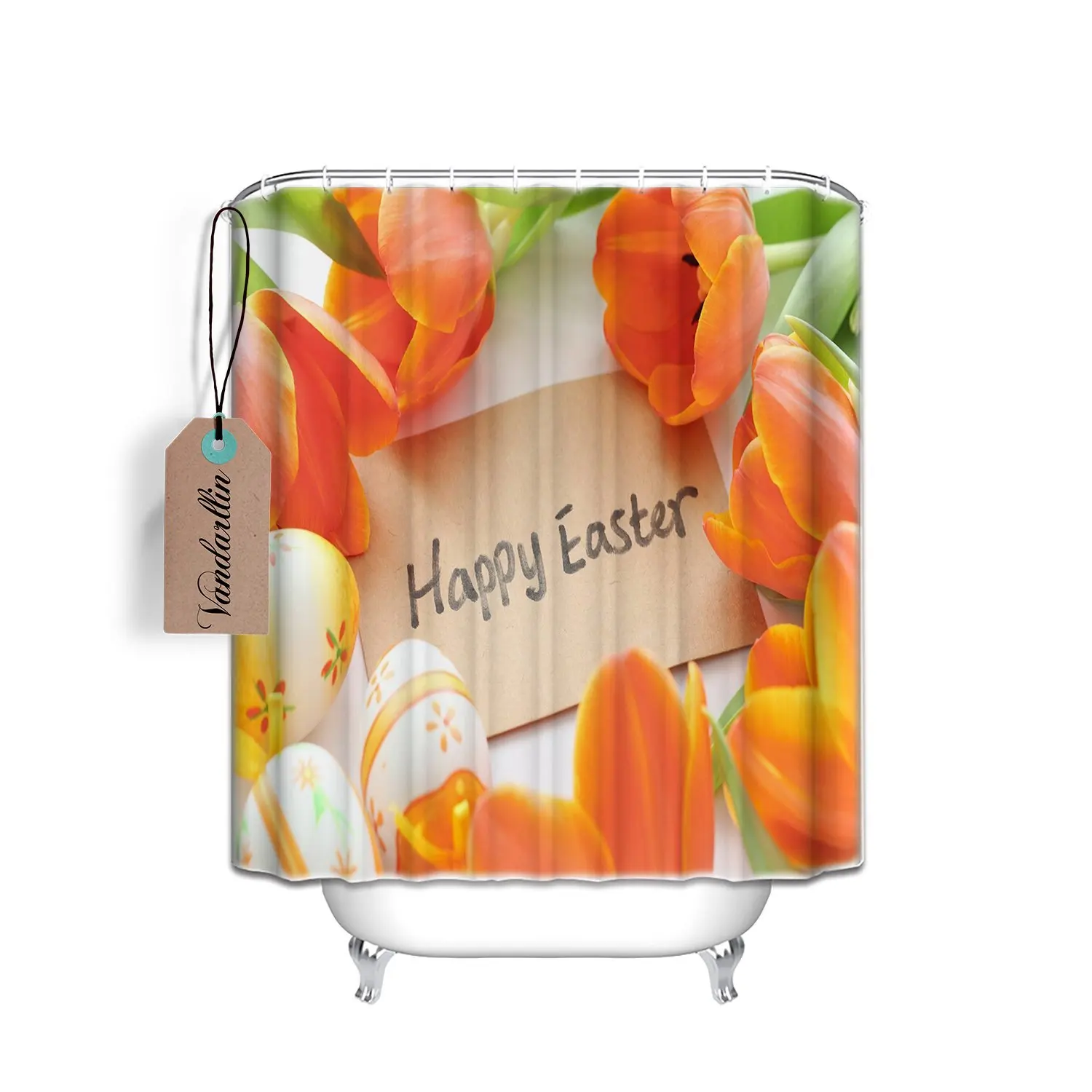 Unique Custom Designs Happy Easter Orange Tulips Waterproof Fabric