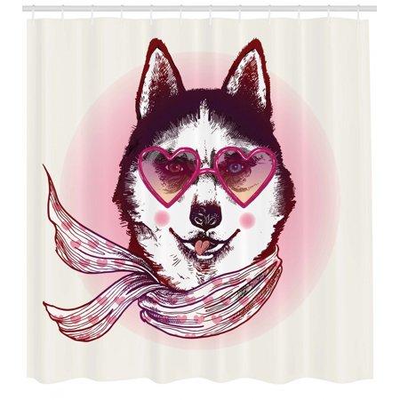 Cartoon Decor Shower Curtain Set Hipster Husky Dog With Heart