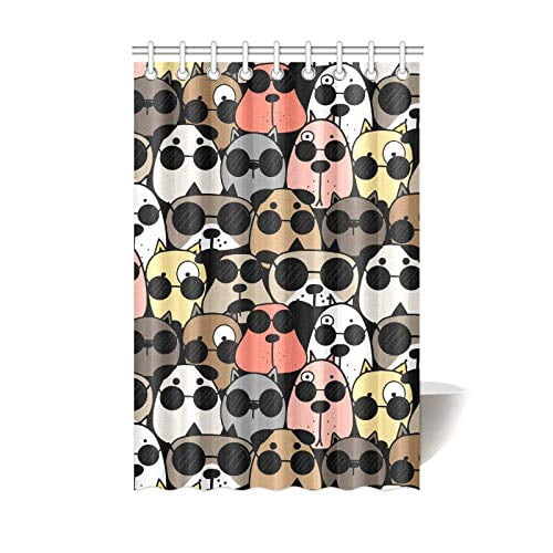 Hellodecor Pug Puppy Dog Shower Curtain Polyester Fabric Bathroom