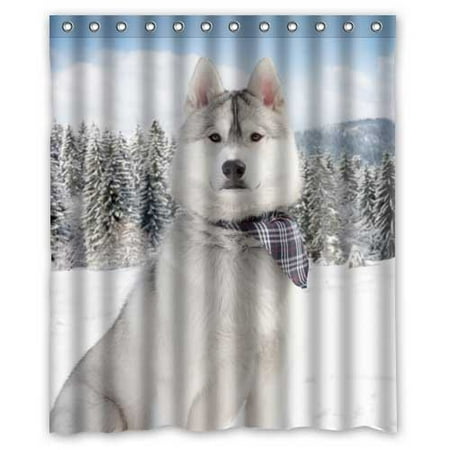 Hellodecor Dogs Winter Snow Fir Animals Shower Curtain Polyester