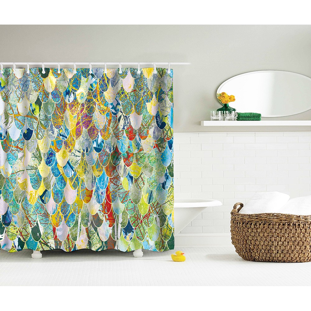 Bathroom Shower Curtain Fish Scale Liberty Amety With 12 Hooks