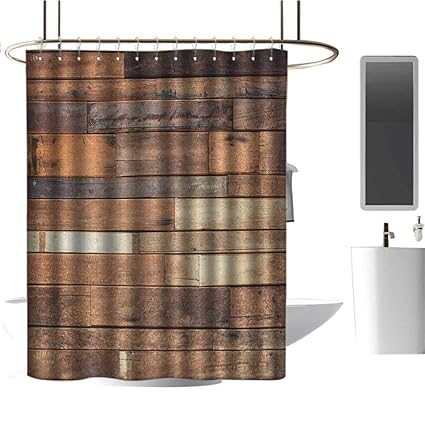 Amazon Com Qenuan Polyester Shower Curtain Wooden Rustic Floor