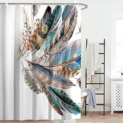 Amazon Com Feoya Feather Shower Curtain House Decor Multicolor