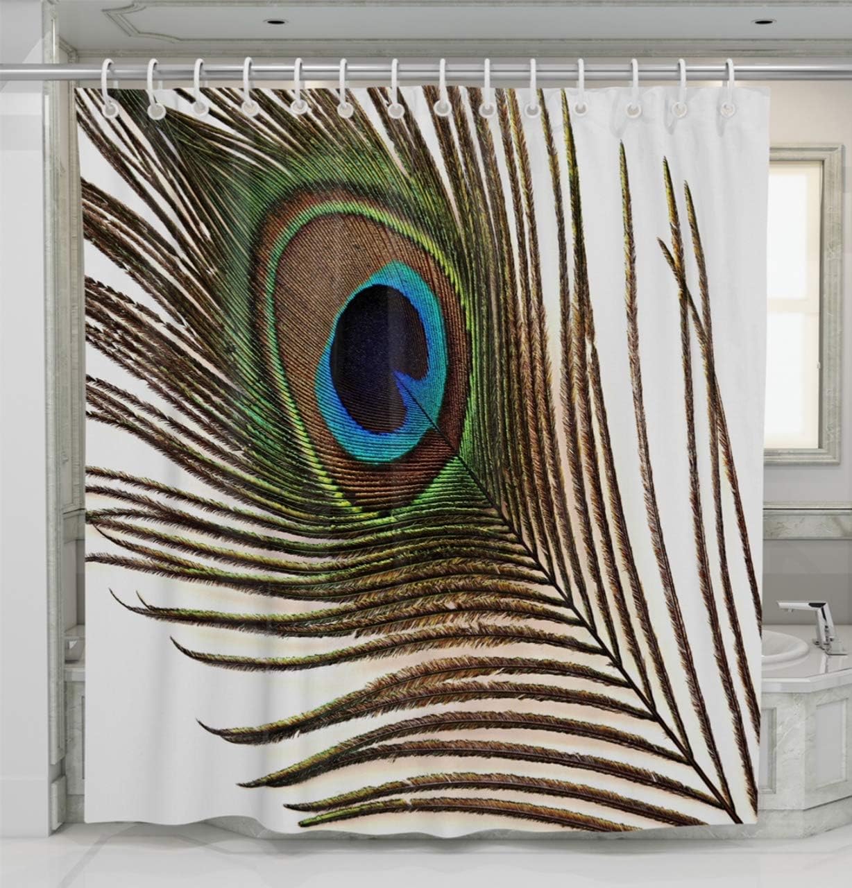 Peacock Feather Shower Curtain Waterproof Polyester Fabric Bath