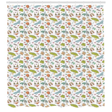 Flip Flop Shower Curtain Hand Drawn Retro Summer Beach Icons
