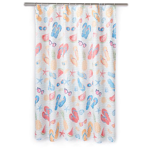 17 Off 2020 Cartoon Beach Flip Flops Shower Curtain In Azure
