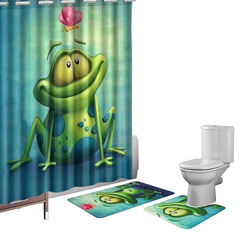 Hellodecor Frog Shower Curtain Polyester Fabric Bathroom
