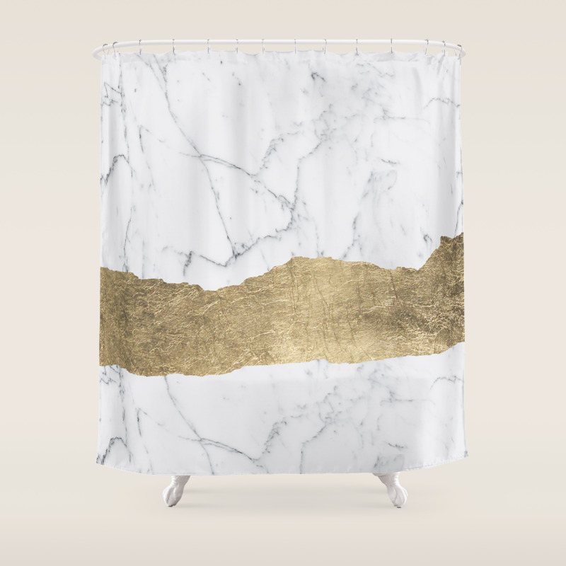Elegant Faux Gold Foil Gray White Modern Marble Shower Curtain By
