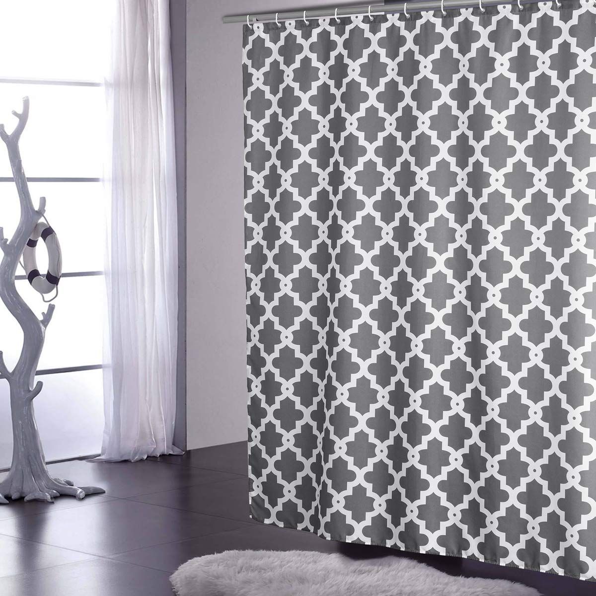 This Grey Geometric Shower Curtain Will Brighten Your Bathroom