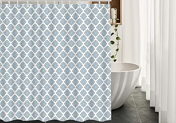 Uphome Moroccan Fabric Shower Curtain Grey And Aqua Damask