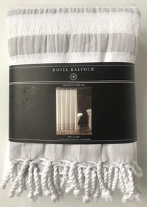 Hotel Balfour White Gray Fringe Turkish Cotton Shower Curtain 72 X