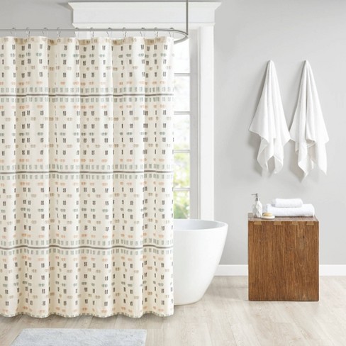 With dimensions of 70x72 inches mainstays geo jacquard fabric shower curtain fits most showers. Tektrum heavy duty 72 by 72 inch waffle weave jacquard shower curtain with hooks for hotel home water repellent mildew resistant antibacterial bathroom curtains rust proof metal grommets grey 45 out of 5 stars 2. Buy madison park princeton geometric jacquard fabric transitional shower curtains for bathroom 72 x 72 blue.